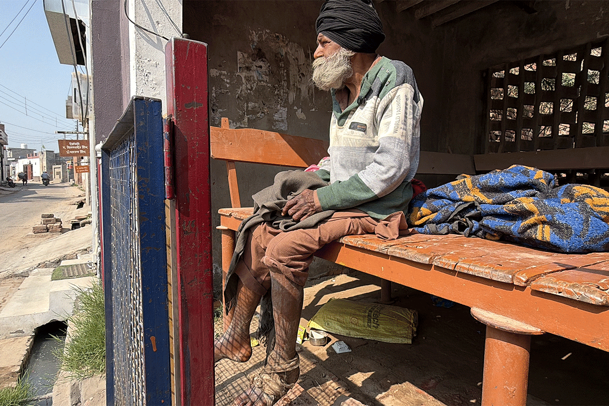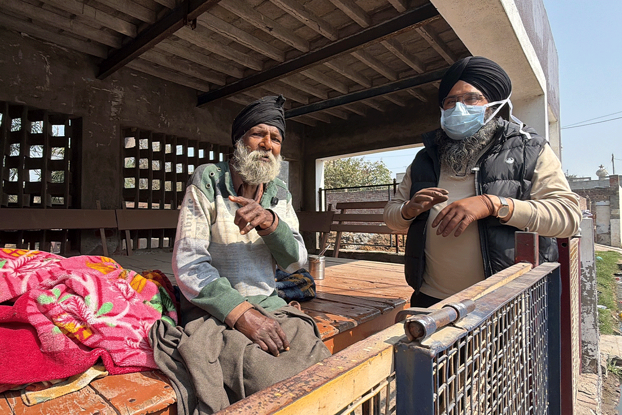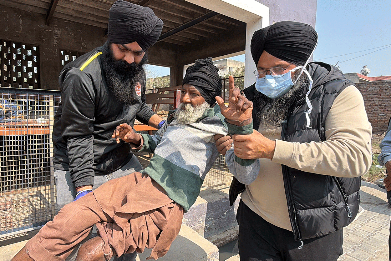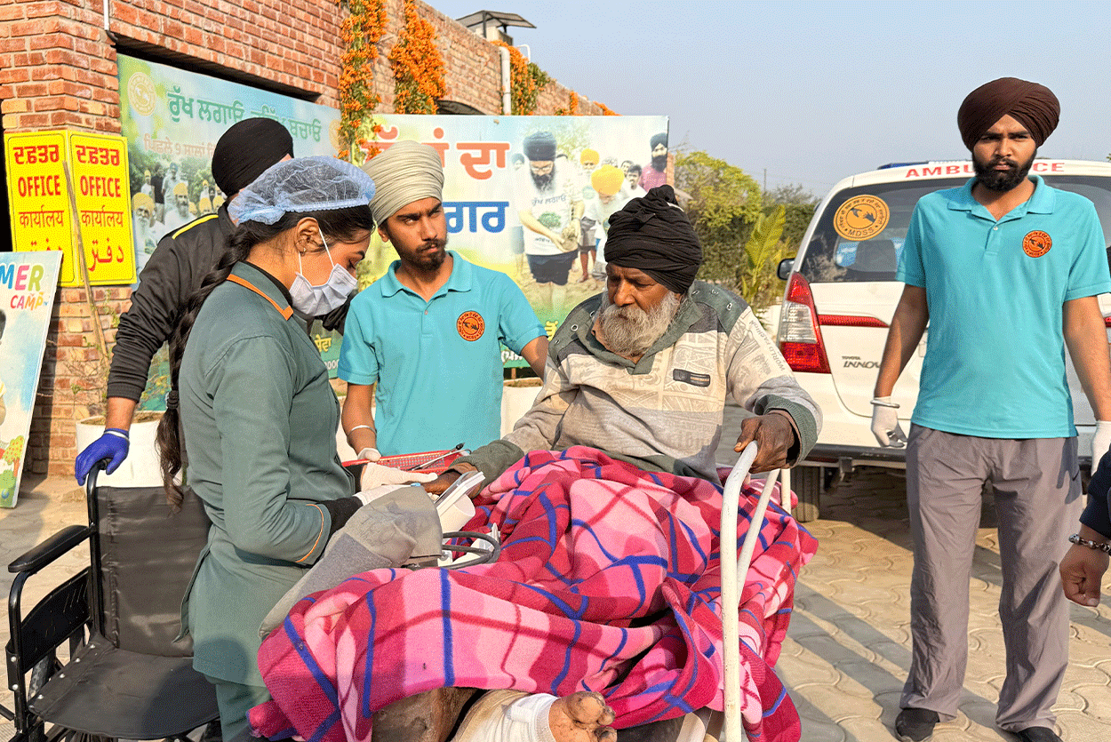 Bapu Ji was found sitting in the village “Sath” (resting place) built in the Gill Patti area of his own village, where worms were eating away at his leg. He had never married. Although his two brothers and four nephews also live in the same village, according to Bapu Ji, he did not receive any share of his land. What the full truth is, only Waheguru knows. However, at present, Bapu Ji’s condition was extremely painful and heartbreaking.